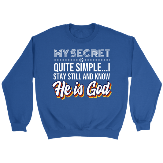 My Secret Is Quite Simple... I Stay Still And Know He Is God Crewneck Part 1