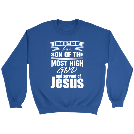 I Identify As He, Him, Son of the Most High God And Servant of Jesus Crewneck Part 1