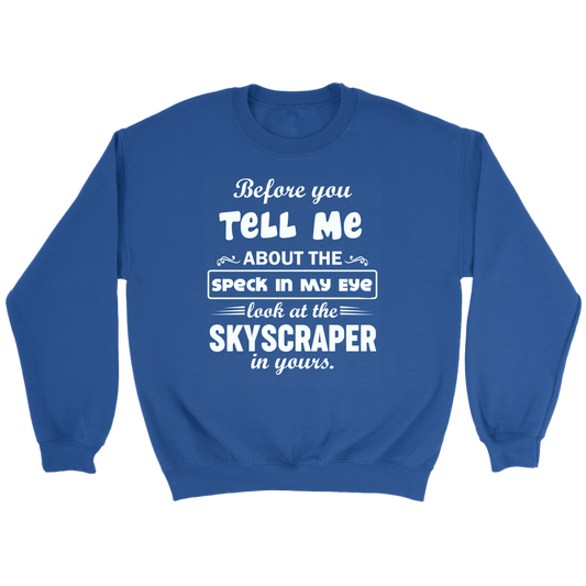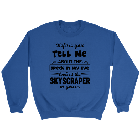 Before You Tell Me About The Speck In My Eye Crewneck Part 1