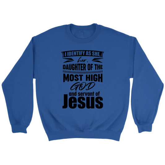 I Identify As She, Her, Daughter of the Most High God And Servant of Jesus Crewneck Part 1