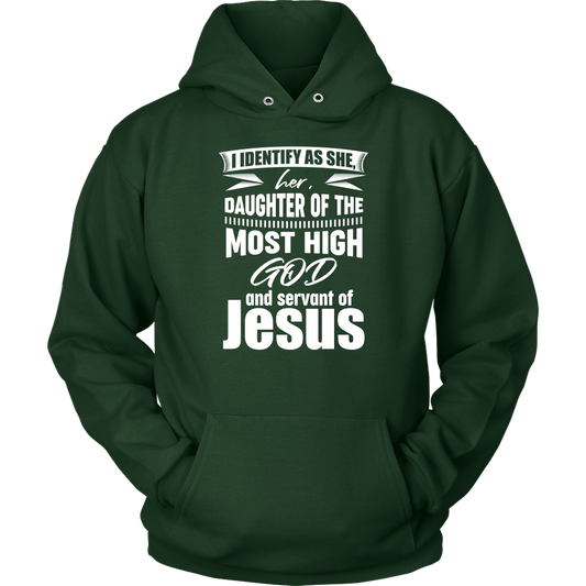 I Identify As She, Her, Daughter of the Most High God And Servant of Jesus Unisex Hoodie Part 1