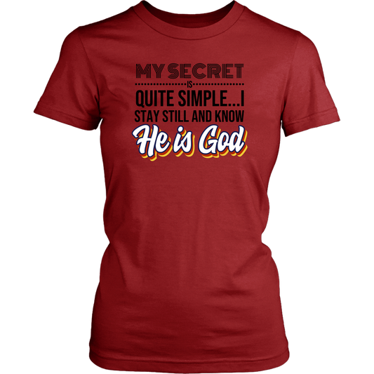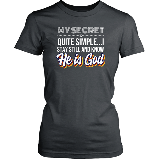 My Secret Is Quite Simple…I Stay Still And Know He Is God Women’s T-Shirt Part 1